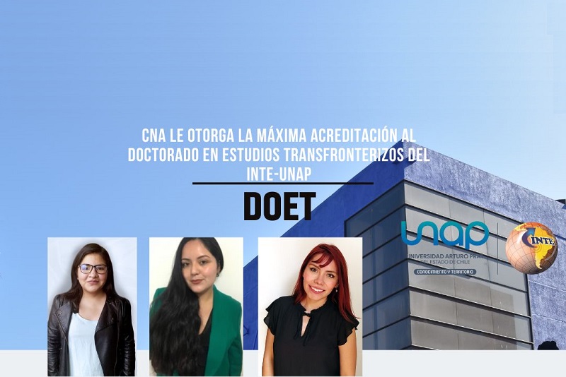 La Comisión Nacional de Acreditación (CNA-Chile), en sesión ordinaria celebrada el día miércoles 30 de noviembre de 2022, le otorgó por unanimidad tres años de acreditación al Doctorado en Estudios Transfronterizos (DOET) del Instituto de Estudios Internacionales (INTE) de la Universidad Arturo Prat (UNAP). El DOET es el primer doctorado de la UNAP en lograr la máxima acreditación para programas sin graduados y graduadas.