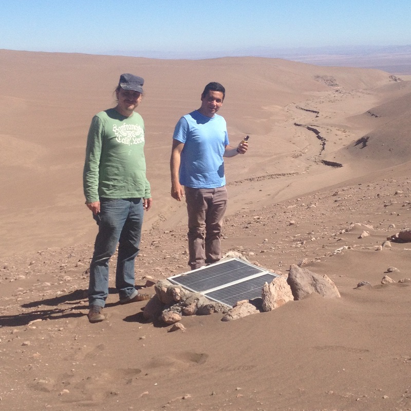 En una estación de la Red Sismológica PicArray, como se reconoce internacionalmente a la Red UNAP, junto al investigador Dr. Simone Cesca del Instituto Alemán GFZ
