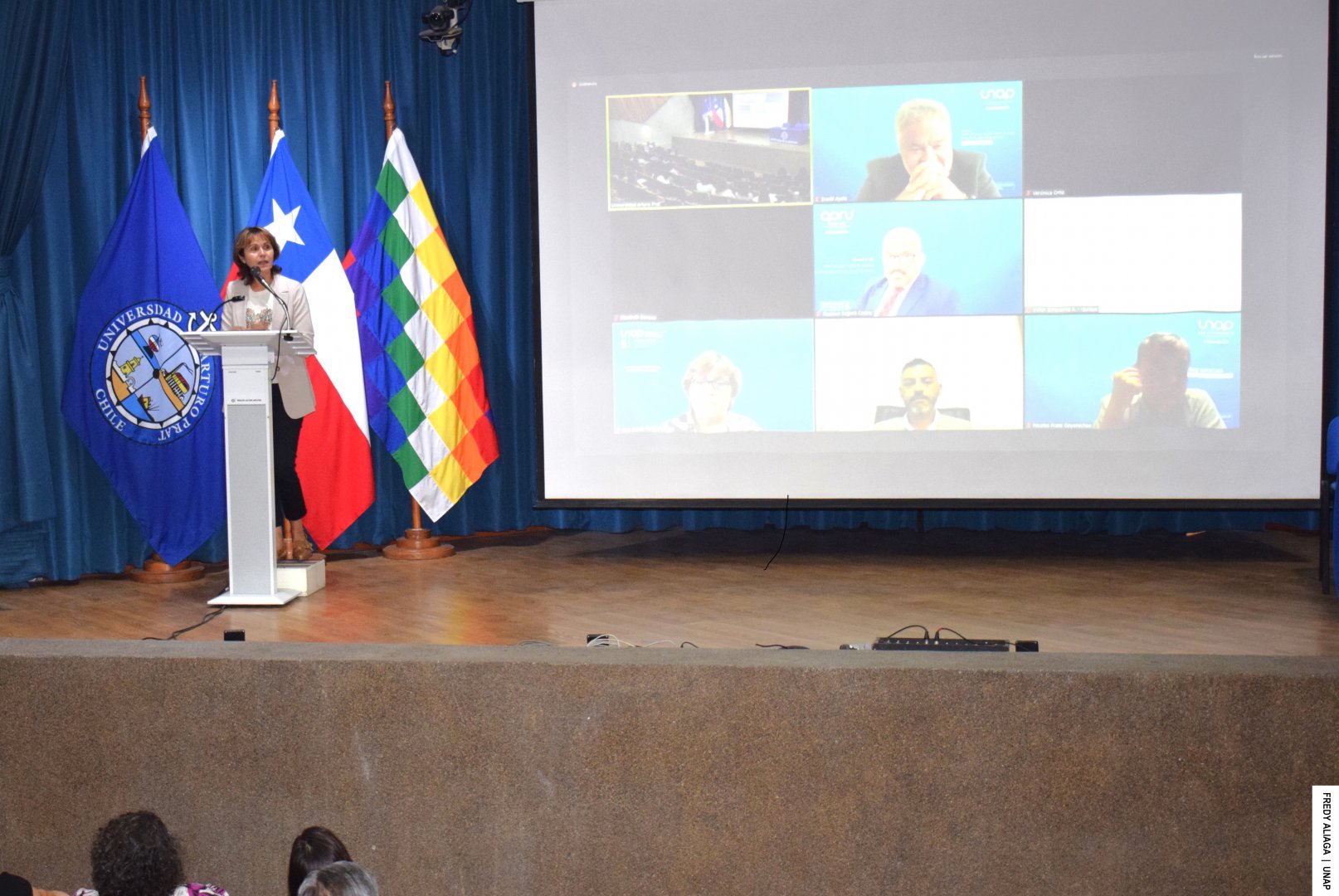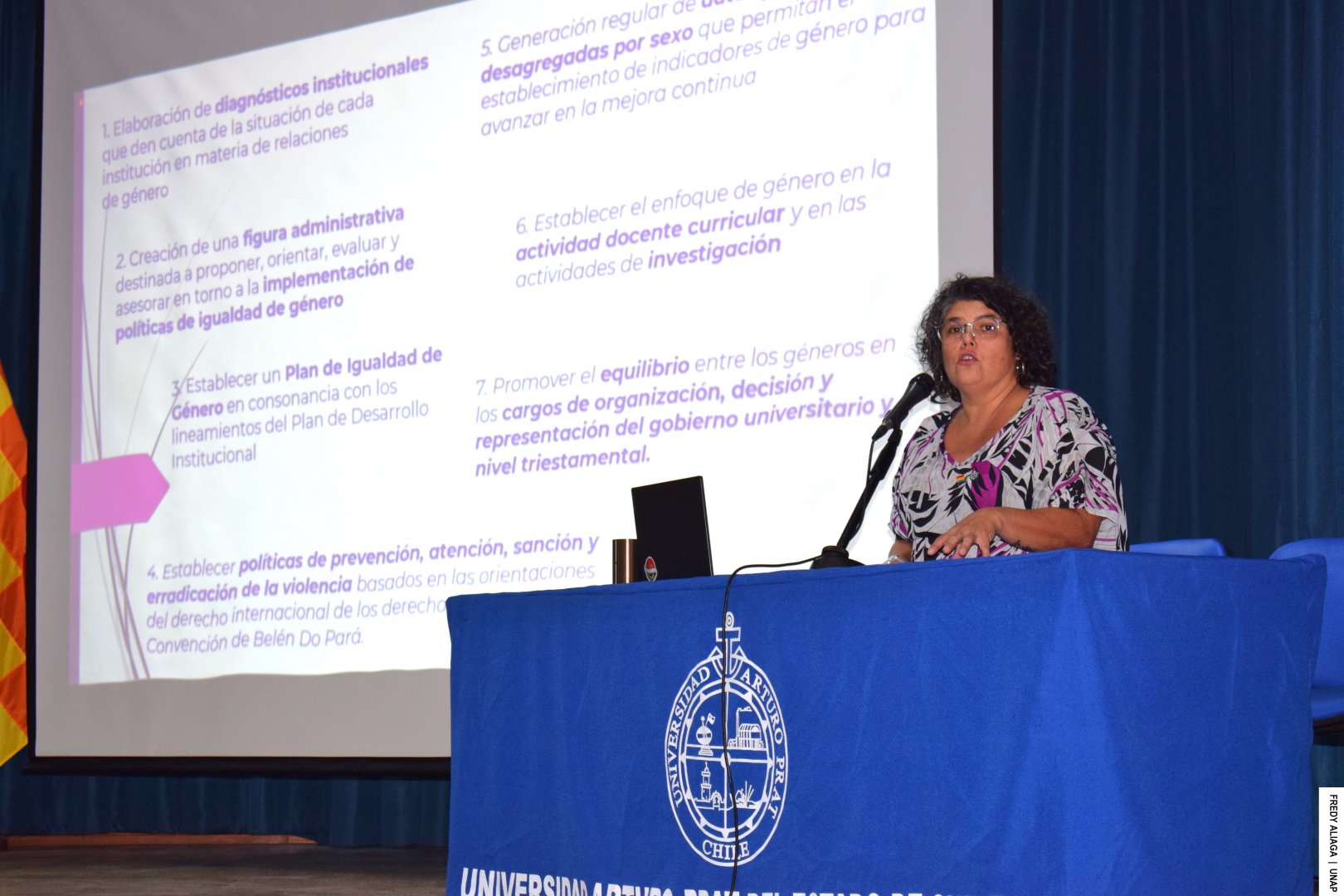 Con un balance institucional de logros y mejoras alcanzadas, y lo que aún está pendiente en materia de equidad de género, la Universidad Arturo Prat (UNAP) conmemoró el Día Internacional de la Mujer con la presencia de autoridades académicas, docentes, funcionarias, funcionarios y estudiantes. La actividad se realizó en el Aula Magna de la Casa Central, en Iquique, y fue transmitida para la Sede Victoria y los Centros Docentes y de Vinculación (CDV) de Arica, Antofagasta y Santiago.