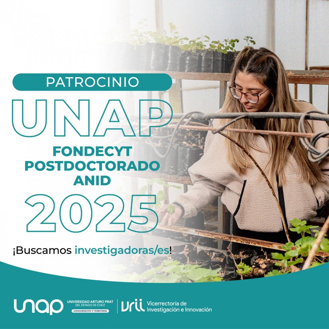 La Universidad Arturo Prat (UNAP), a través de la Vicerrectoría de Investigación e Innovación (VRII), convocan a patrocinio institucional Fondecyt Postdoctorado 2025, otorgado por la Agencia Nacional de Investigación y Desarrollo (ANID), con el propósito de fomentar el liderazgo científico entre doctoras y doctores que se estén iniciando en la investigación.