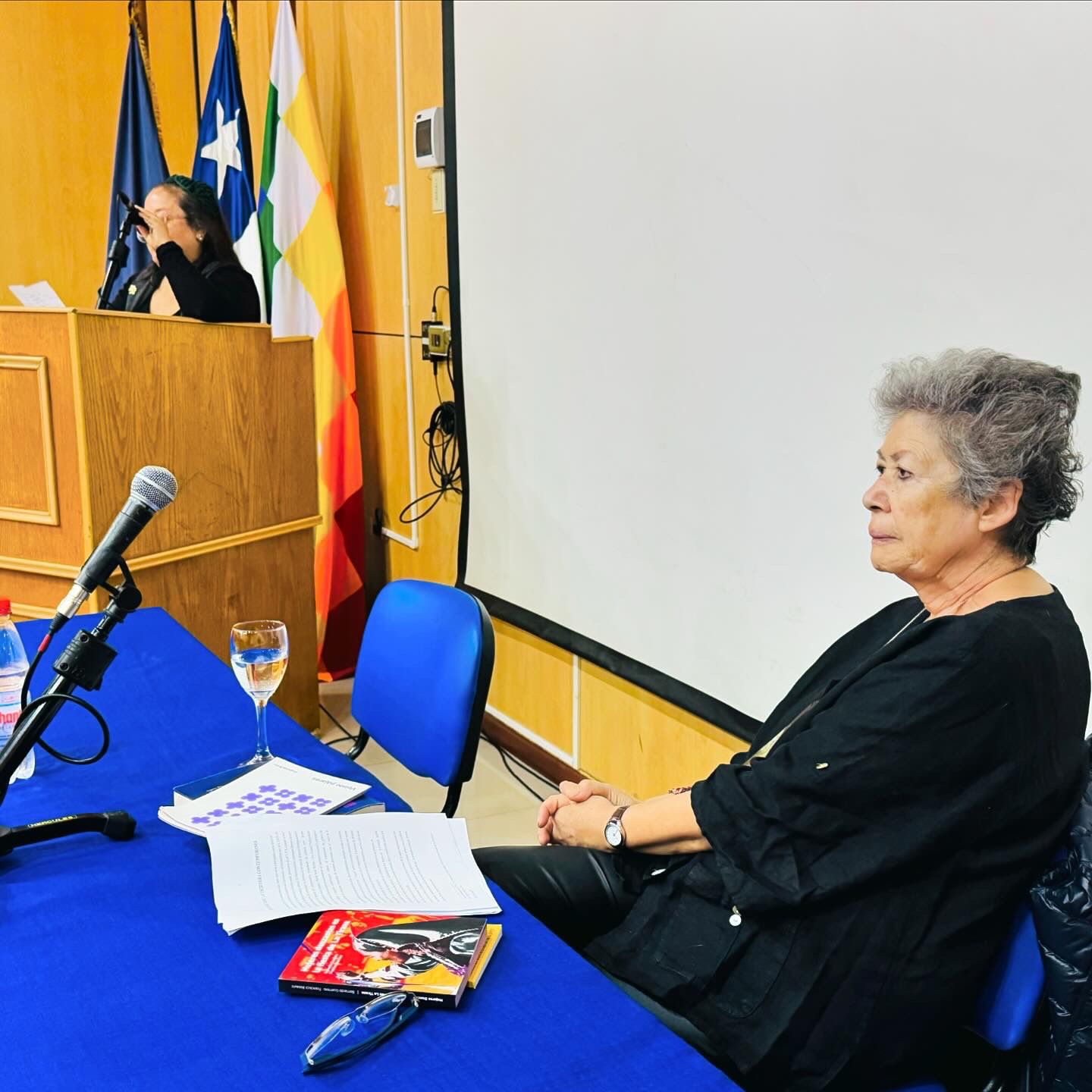 Eugenia Brito Astrosa, doctora en Literatura Chilena e Hispanoamericana de la Universidad de Chile, ensayista chilena y destacada poeta nacional, en su presentación se refirió a lo complejo de ser mujer y poeta en una época marcada por la dictadura militar, señalando: “Me parece interesante poder establecer una conexión y una relación con Iquique, y llevar hoy, en este conversatorio, todas las ideas concernientes a la liberación de la mujer en la escritura, a todo lo que es la disidencia política y cultural, y también, a que las/os asistentes conozcan mi pensamiento y mi poesía. La represión y el machismo de aquellos años, hicieron que, como escritora, trabajara un lenguaje más cifrado”.