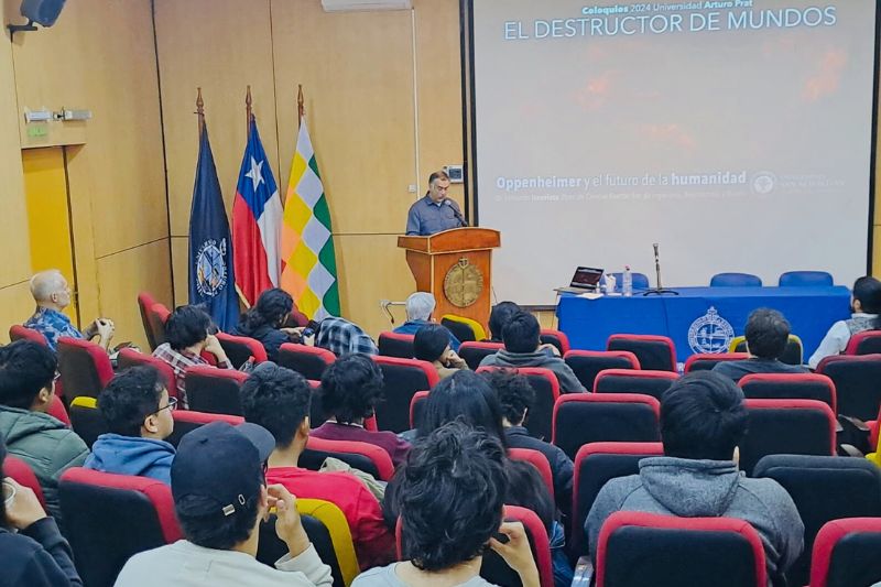 La Facultad de Ciencias de la Universidad Arturo Prat (UNAP) inauguró su ciclo de coloquios con la ponencia titulada “El destructor de mundos: Oppenheimer y el futuro de la humanidad”, dictada por el renombrado Dr. Fernando Izaurieta, físico teórico y divulgador científico. El académico es Doctor en Ciencias Físicas y ha realizado investigaciones significativas en el campo de la astrofísica, especialmente en el estudio de los agujeros negros.