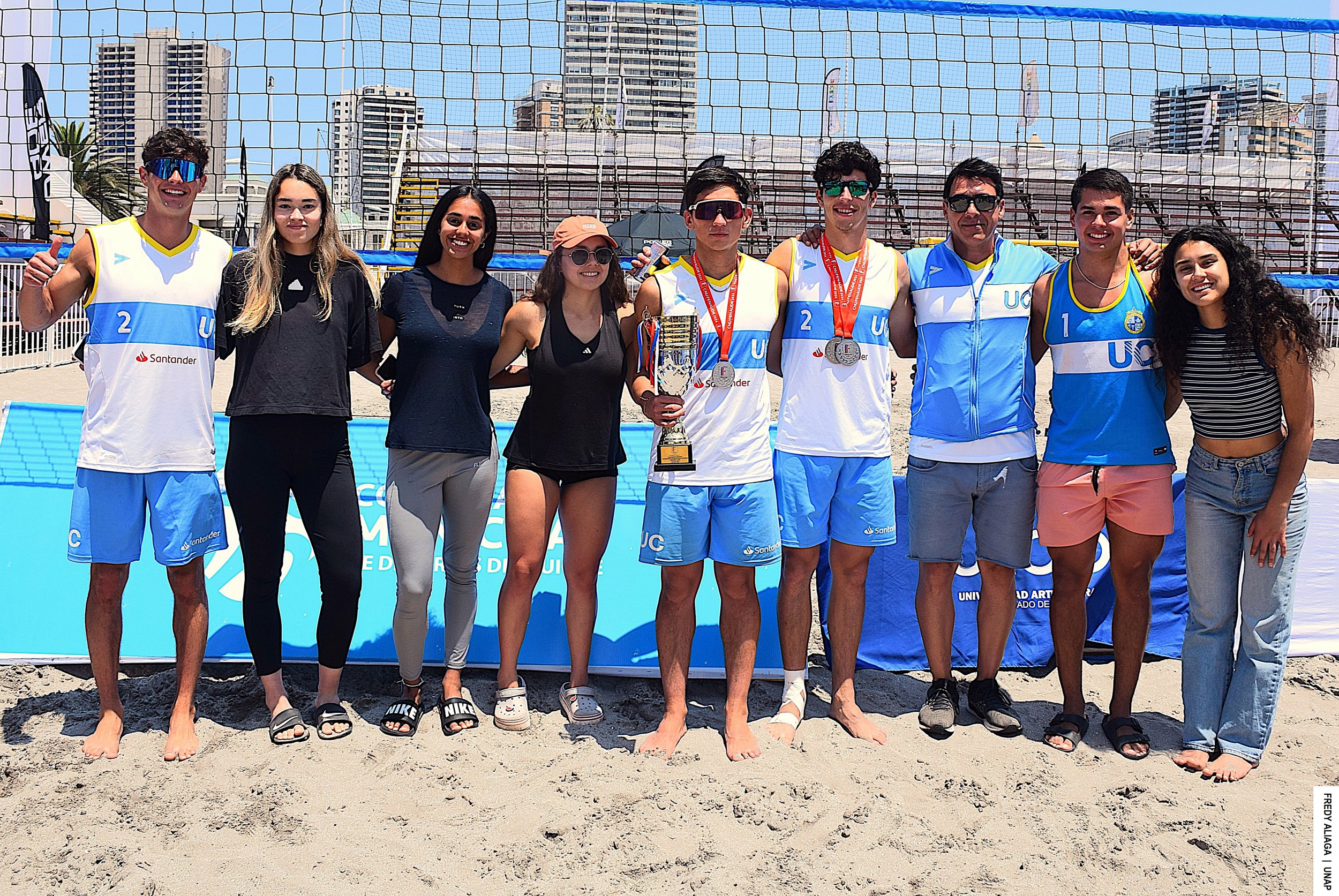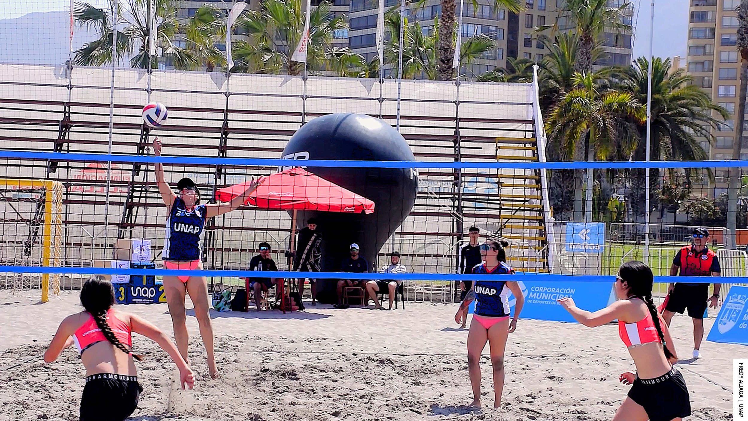 La U. de Chile, U. Arturo Prat y la U. Católica compartieron el podio con los tres mejores lugares del Campeonato Nacional Universitario de Voleibol Playa que reunió a 14 equipos del país. La final —de alto nivel deportivo— se disputó este viernes 4 de octubre en el recinto Arena Cavancha de Iquique, Región de Tarapacá. El evento fue organizado por UNAP y la Federación Nacional Universitaria de Deportes FENAUDE.