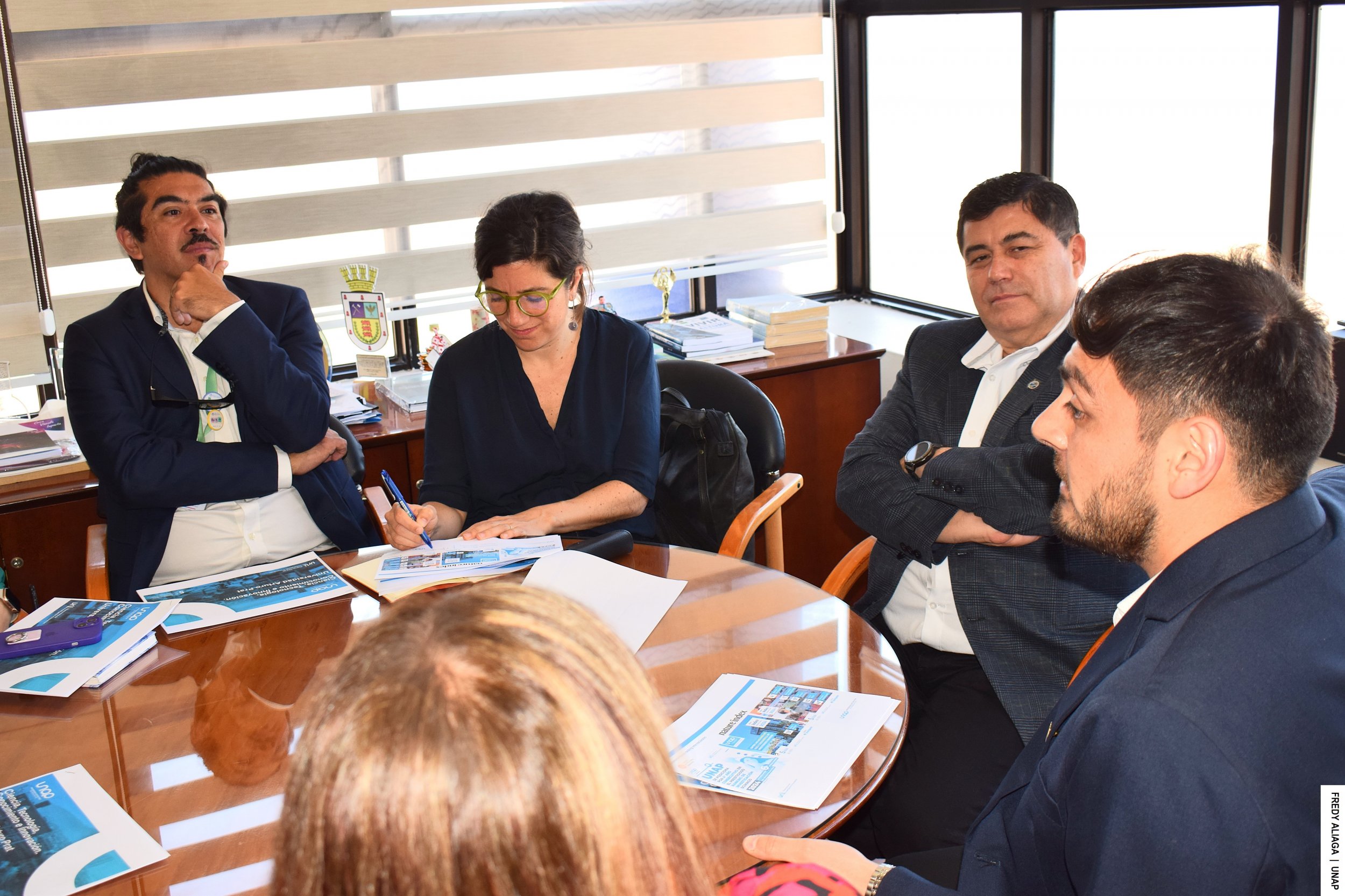 La secretaria de Estado sostuvo una reunión de trabajo este viernes 11 de octubre con el rector de la UNAP, Alberto Martínez Quezada, junto a más autoridades universitarias. Estuvo el presidente de la Honorable Junta Directiva, César Espíndola Arellano; la prorrectora Ninoscka Zencovich Burdiles; el vicerrector de Investigación e Innovación, Ezequiel Martínez Rojas; la directora de Equidad de Género y Diversidad, Karen Jacob Chung; el director de Investigación, Ricardo Espinaza Solar; y el director de Innovación, Raúl Castillo Villagra.