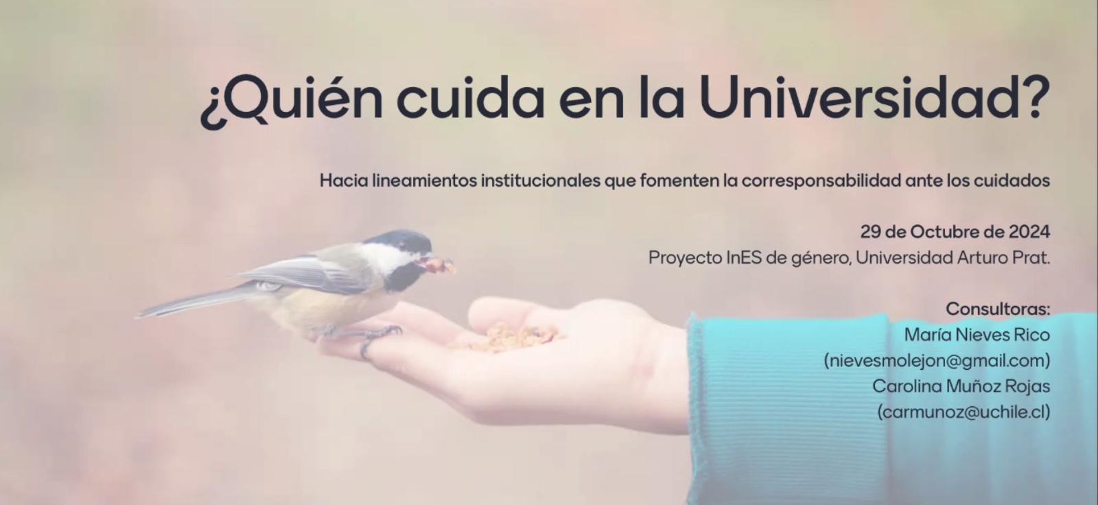 En el marco del "Mes de los Cuidados" en la Universidad Arturo Prat, la charla titulada ¿Quién cuida en la universidad?, organizada por el proyecto InES Género de la UNAP, fue presenciada por cerca de 50 asistentes de los tres estamentos universitarios. La actividad, realizada en conmemoración del Día Internacional de los Cuidados y el Apoyo, reflejó el creciente interés en temas de corresponsabilidad y cuidado.