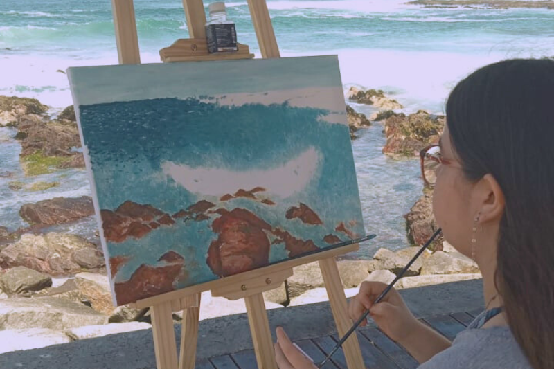 "Participé en el taller de Electro-impresionismo, en el cual tuve una gran experiencia que me hizo aprender más sobre la pintura al óleo. La pasé muy bien en este taller, ya que tuve la oportunidad de pintar frente a la playa, conectado con la naturaleza".