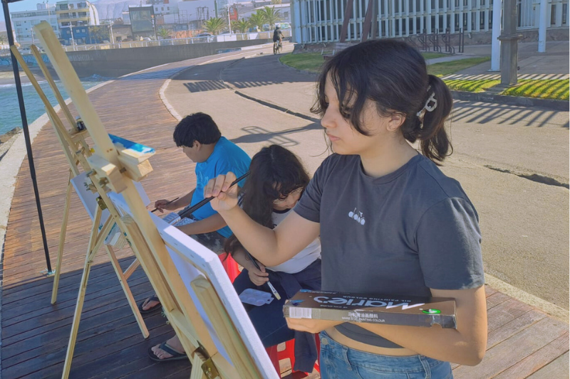 Antonia Lorzo, estudiante de tercero medio del Colegio Academia Tarapacá, comentó: “Yo pensé que iba a ser solamente física, pero cuando comenzamos con el tema del arte, me pareció simpático, ya que nunca había pintado y no había pensado que se podía conectar la ciencia con algo artístico. Es algo llamativo y ojalá se vuelva a repetir, porque no solo los de mi curso participaron; de hecho, no todos lo hicieron. Me gustaría que todos pudieran participar y así conocer cómo se puede conectar el arte con la ciencia”.
