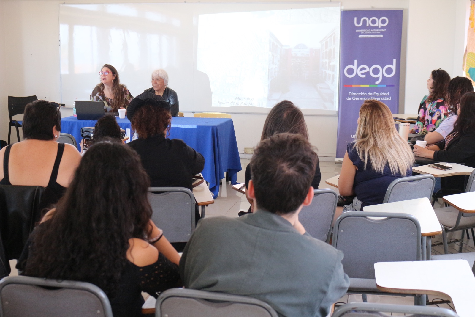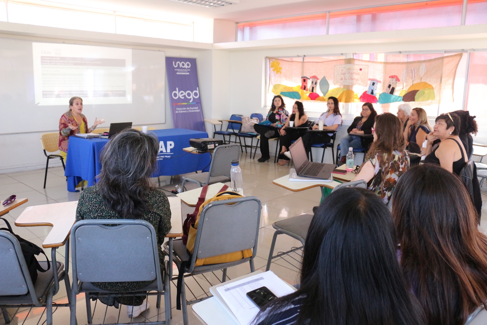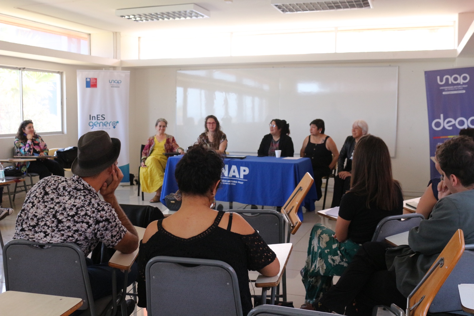 Con una activa participación de la comunidad universitaria y organizaciones sociales, se realizó la Jornada de Reflexiones Críticas sobre Violencia de Género en el Territorio: Memorias de Violencias y Resistencias de niñas y mujeres en la región de Tarapacá, en la Sala E5 de Casa Central de la Universidad Arturo Prat (UNAP).