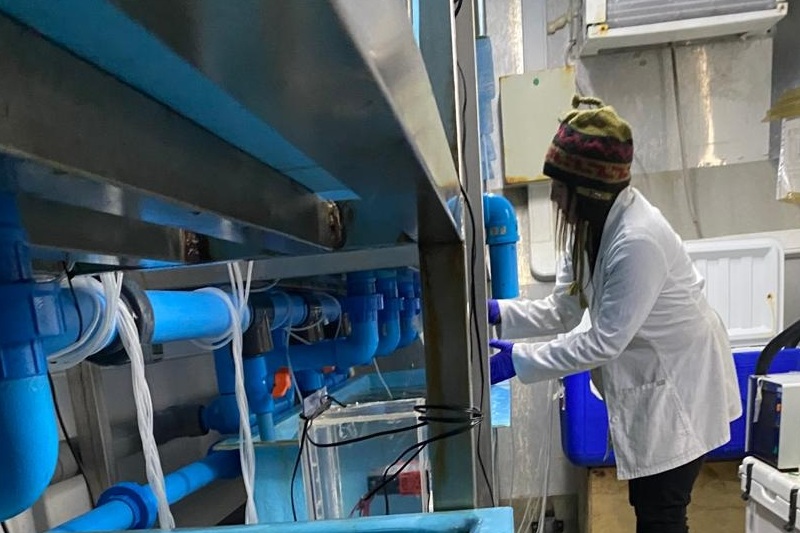 Como parte del estudio, ambas especialistas se trasladaron a la ciudad de Punta Arenas para desarrollar un experimento controlado en los acuarios del INACH, trabajando en conjunto con investigadores de dicha institución. Allí se analizaron, en condiciones cuidadosamente monitoreadas, los posibles efectos de la exposición a microplásticos en especies de peces antárticos.